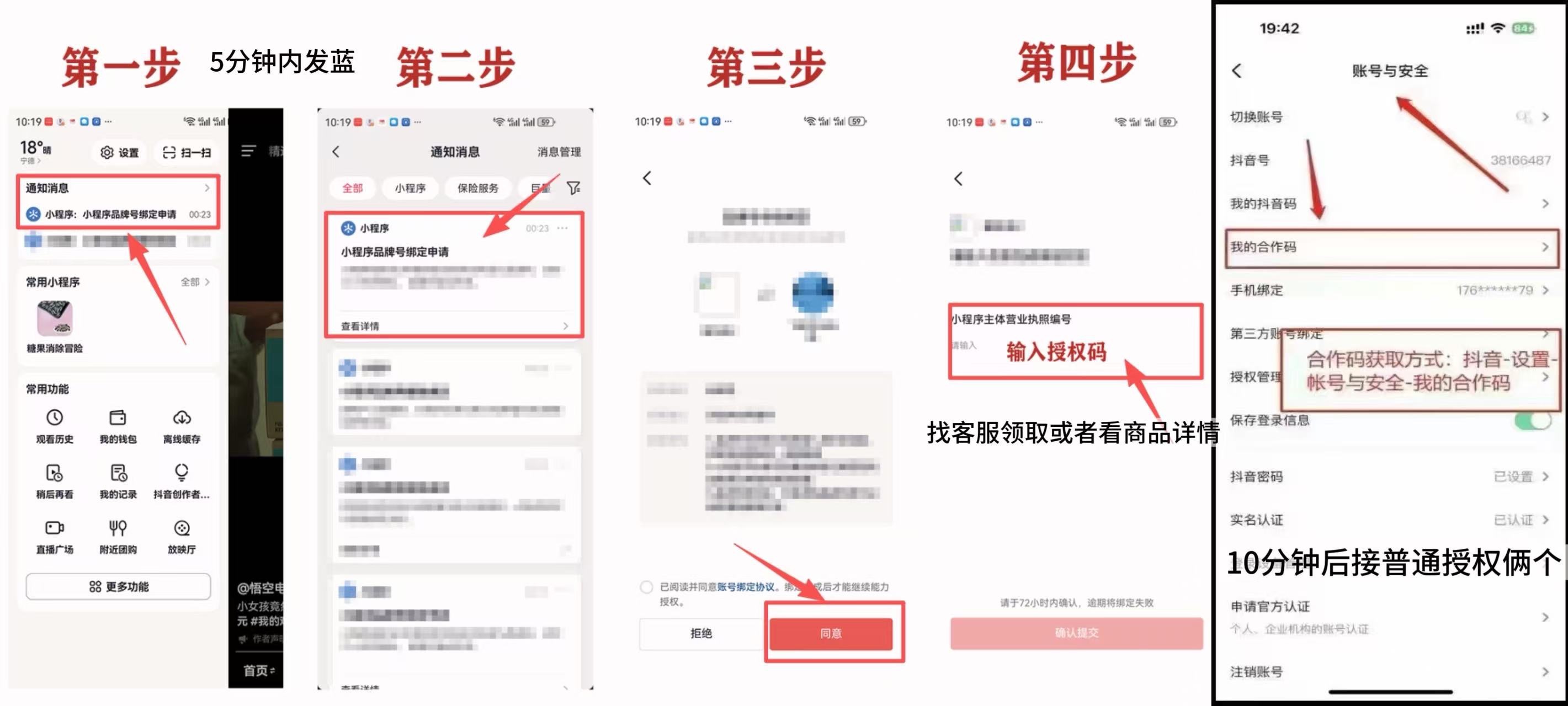 下单后5分钟内客服会发送授权到你DY里,让客户同意授权即可