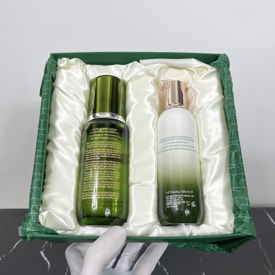海蓝之谜礼盒护肤2件套集修护、抗老、提亮、嘭弹为一体的乳??它里面的神奇活性精萃,能从根源修护抗老,强化肌肤的自愈力,肌肤的受损老化和敏感现象,都能被它很好的修护,真正深入肌底,修护那些支离破碎的皮肤,淡化细纹干纹,紧实松垮的皮肤,滋润+抗老~搭配精萃水✔这对精萃水乳CP搭配起来效果绝对1+1>2,海蓝之谜精粹水乳两件套礼盒装。