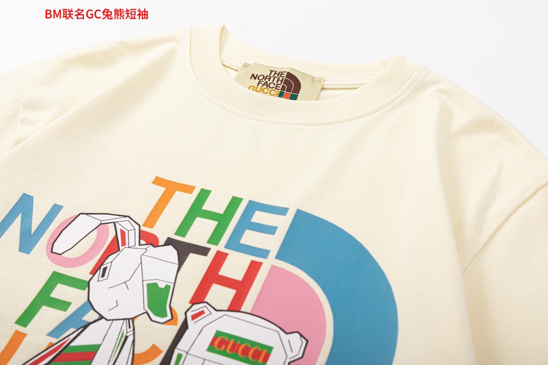 BM联名GC兔熊短袖GUCCI古驰2023春夏新款联名北面字母logo短袖T恤高版本高版本全网独家首发 百搭款细节处理完美 200g纯棉面料数码直喷印花工艺十分精致原
