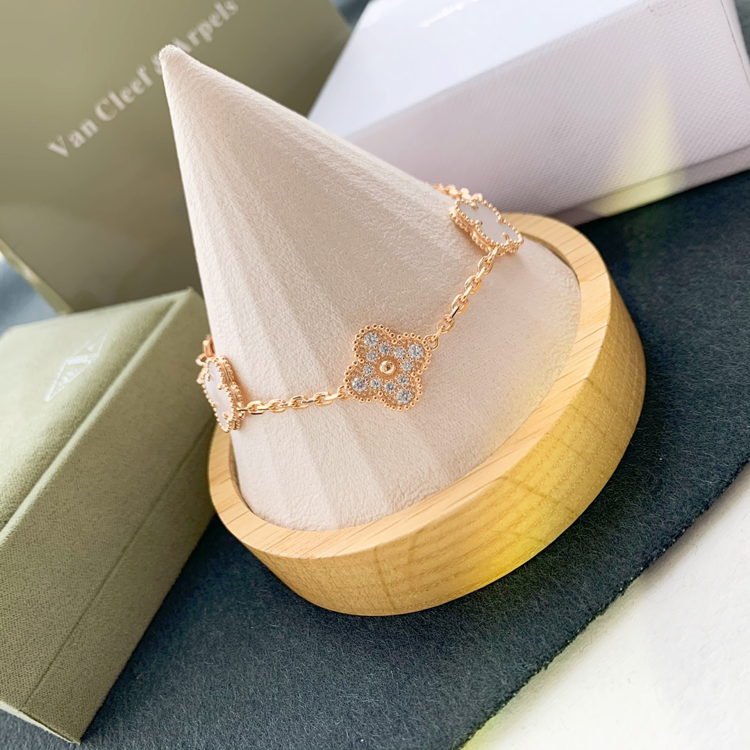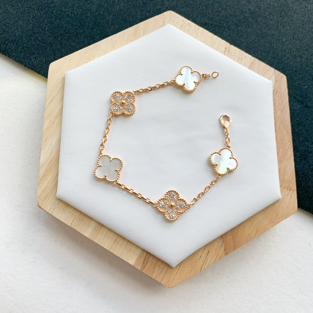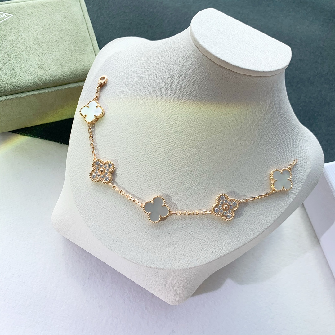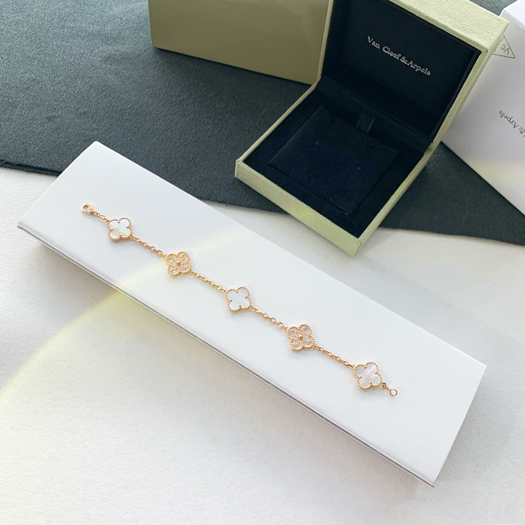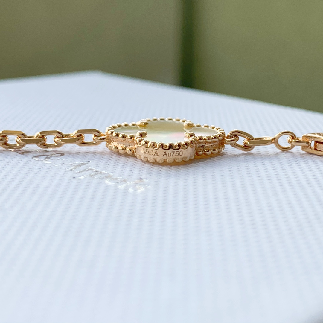 【顶级版本】Van Cleef & Arpels梵克雅宝 四叶草五花手链- 顶级复刻版本- 独家实拍- 对版对标品质 带原版钢印编码刻字- 专柜最新原版棱形扣- 全套绒面礼盒包装(手提袋、包装盒、首饰盒、保修卡)- 颜色:如图