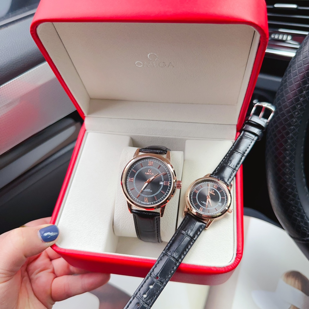 最新欧米茄情侣腕表 IPG表壳 生活防水 真皮表带 。简约三针设计 6字位单历 内敛,简约,精致,大气!集美学与实用于一体,气质高雅!专注品质,不忘初衷!真实展现。