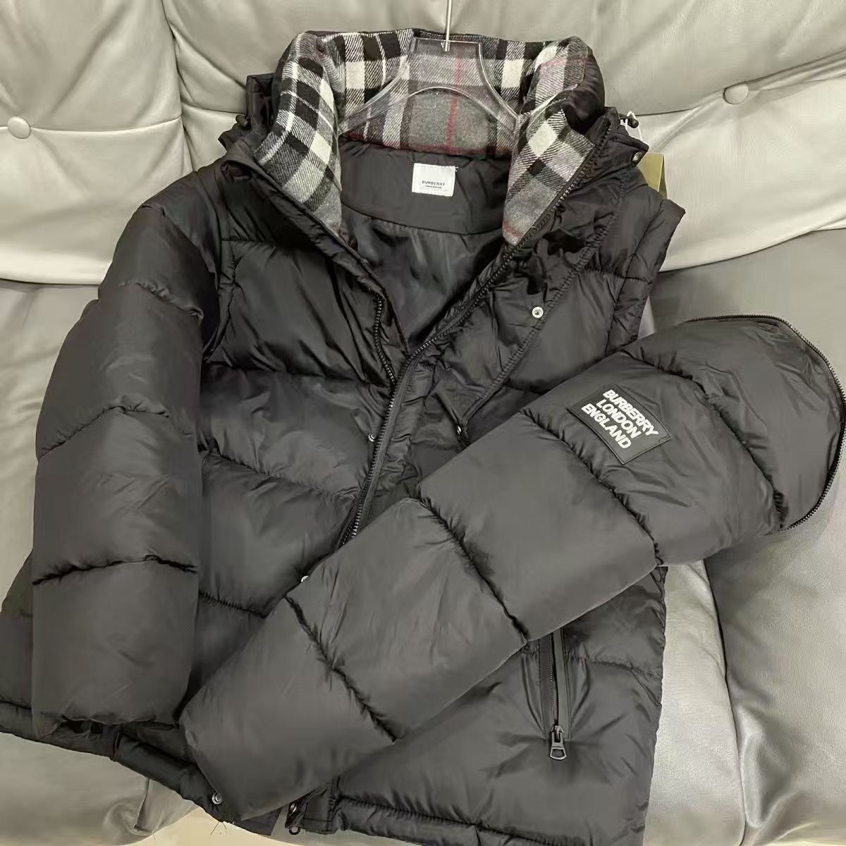 贸易羽绒棉服❇️可拆卸马甲+羽绒棉服选择Burberry巴宝莉独家专供秋冬新款高领连帽棉服。帽子可拆卸设计 贸易公司渠道稀出,降温天气必备的保暖单品,不论是日常还是户外运动都能穿。耐磨防刮易打理,在搭配大方格绗缝工艺,打造蓬松饱满的整体效果,兼顾强悍的保暖锁温效果,让你无惧秋冬季寒冷的户外天气气