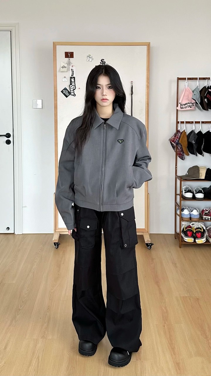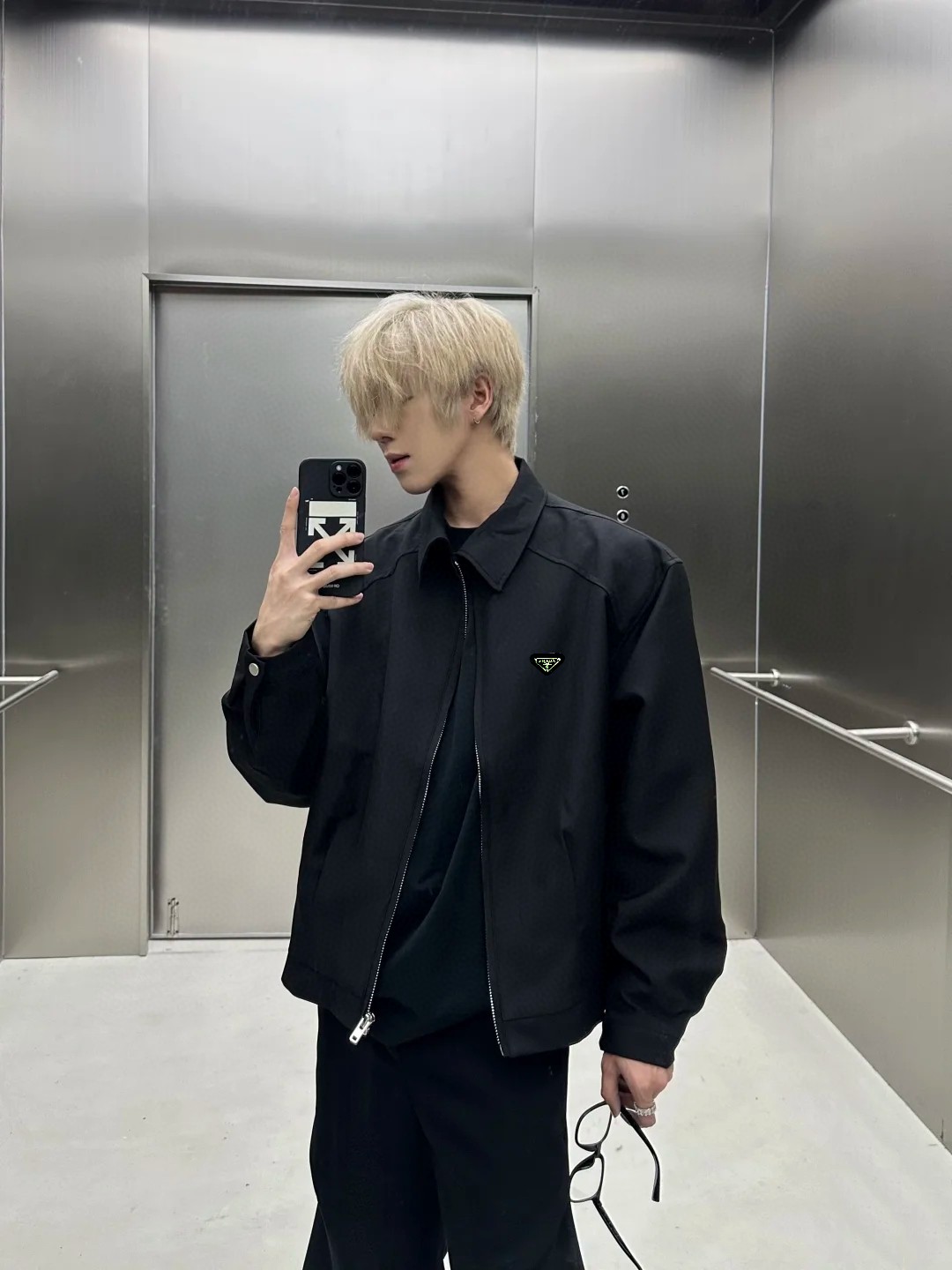 普拉达春季新款外套 奢潮质感 vibe风翻领夹克 短宽版型 利落线条设计 简约时尚 胸口经典三角金属标 金属拉链 袖口四合扣可调节 外贸大厂代工 专柜品质 高街奢潮风推荐