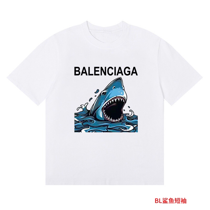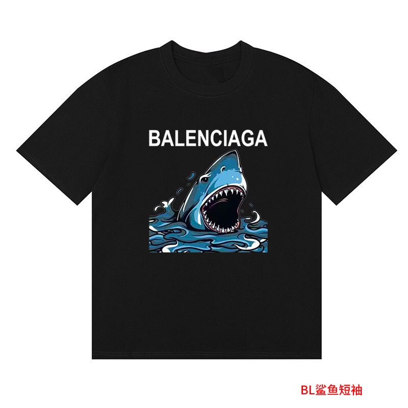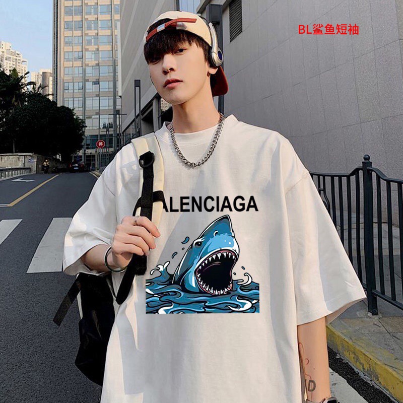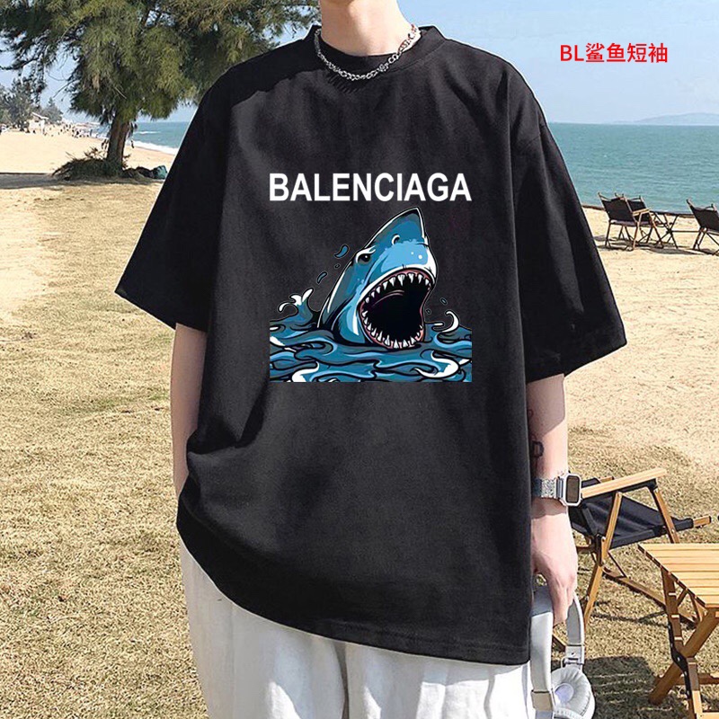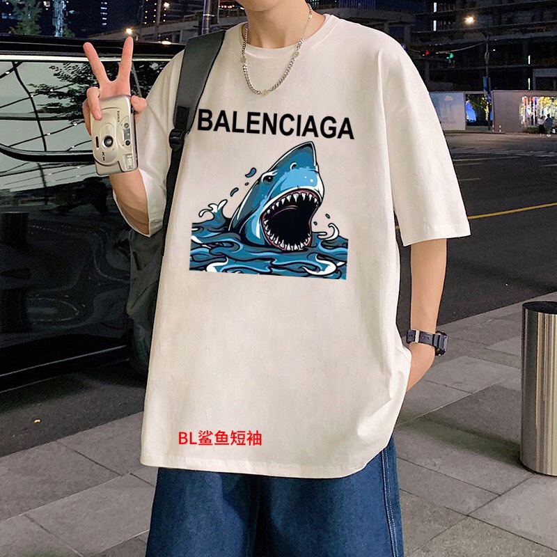 BL鲨鱼短袖Balenciaga巴黎世家 2023鲨鱼印花宽松百搭情侣款短袖男女同款 情侣款 申州公…