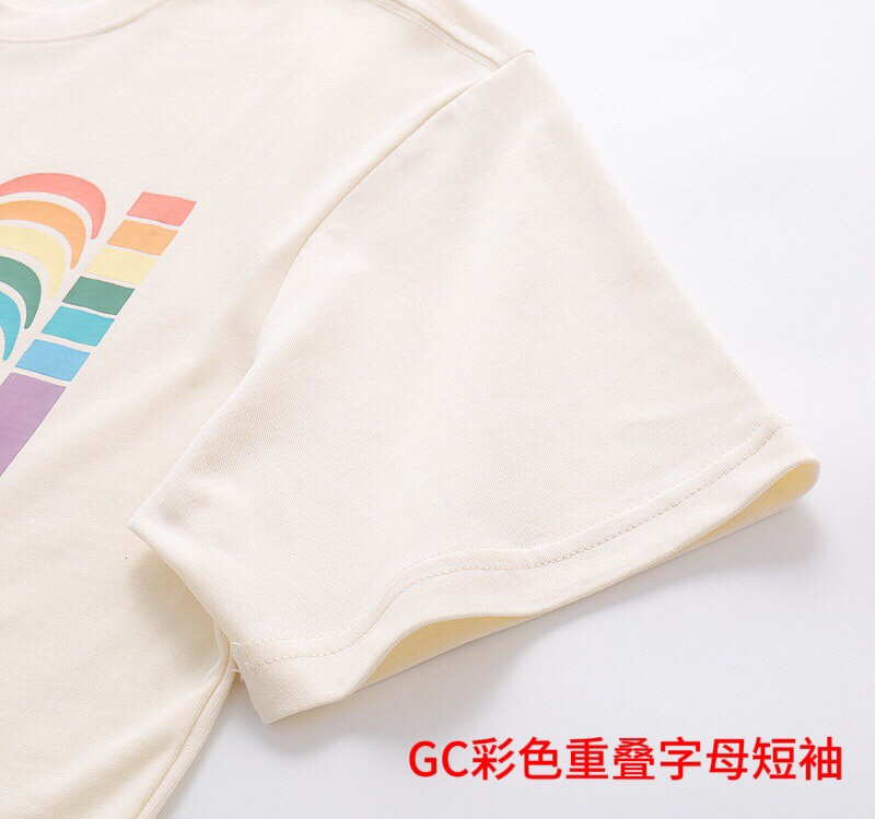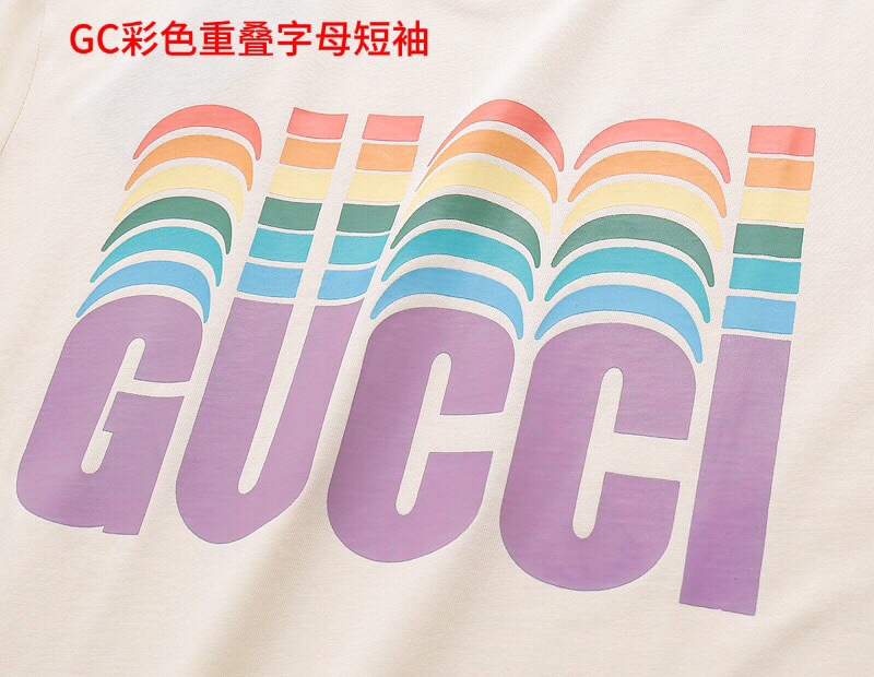 GC彩色重叠字母短袖Gucci/古驰 23ss logo渐变印花短袖t恤面料舒适透气,潮范大气 原版印花一比一复刻,面料采用纯棉精梳棉面料,搭配运动鞋清新舒适 逛街约
