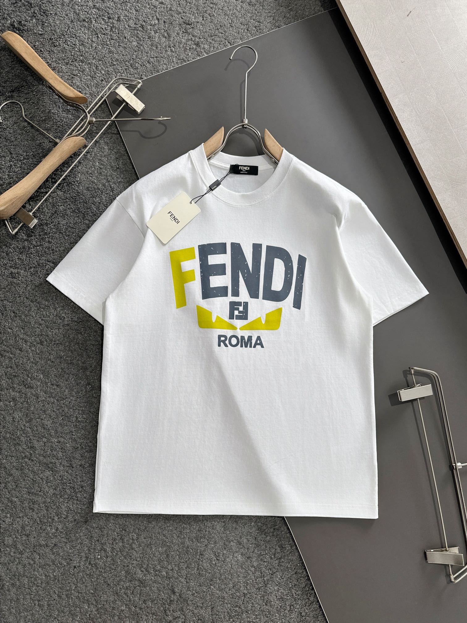 Fendi芬迪男女情侣同款短袖半袖t恤 面料采用260克顶级高密度纯棉面料!双纱加厚重磅面料!手感厚实!质感无敌! 情侣宽松oversize版型!