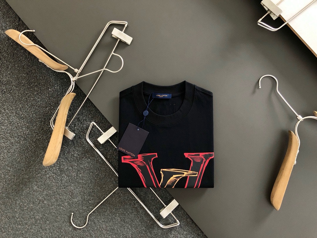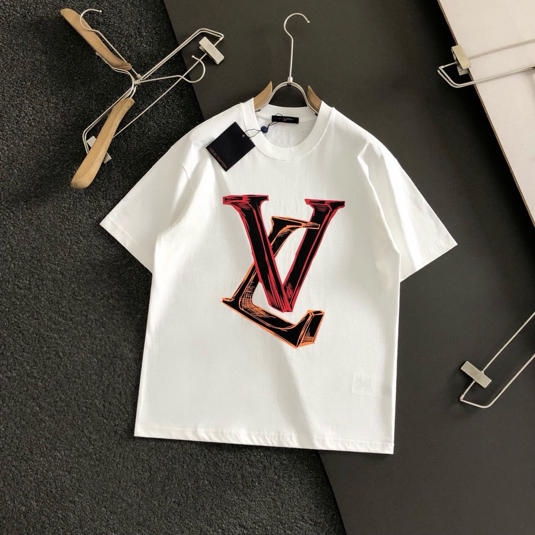 Lv路易威登男女情侣同款短袖半袖t恤 面料采用260克顶级高密度纯棉面料!双纱加厚重磅面料!手感厚实!质感无敌! 情侣宽松oversize版型!