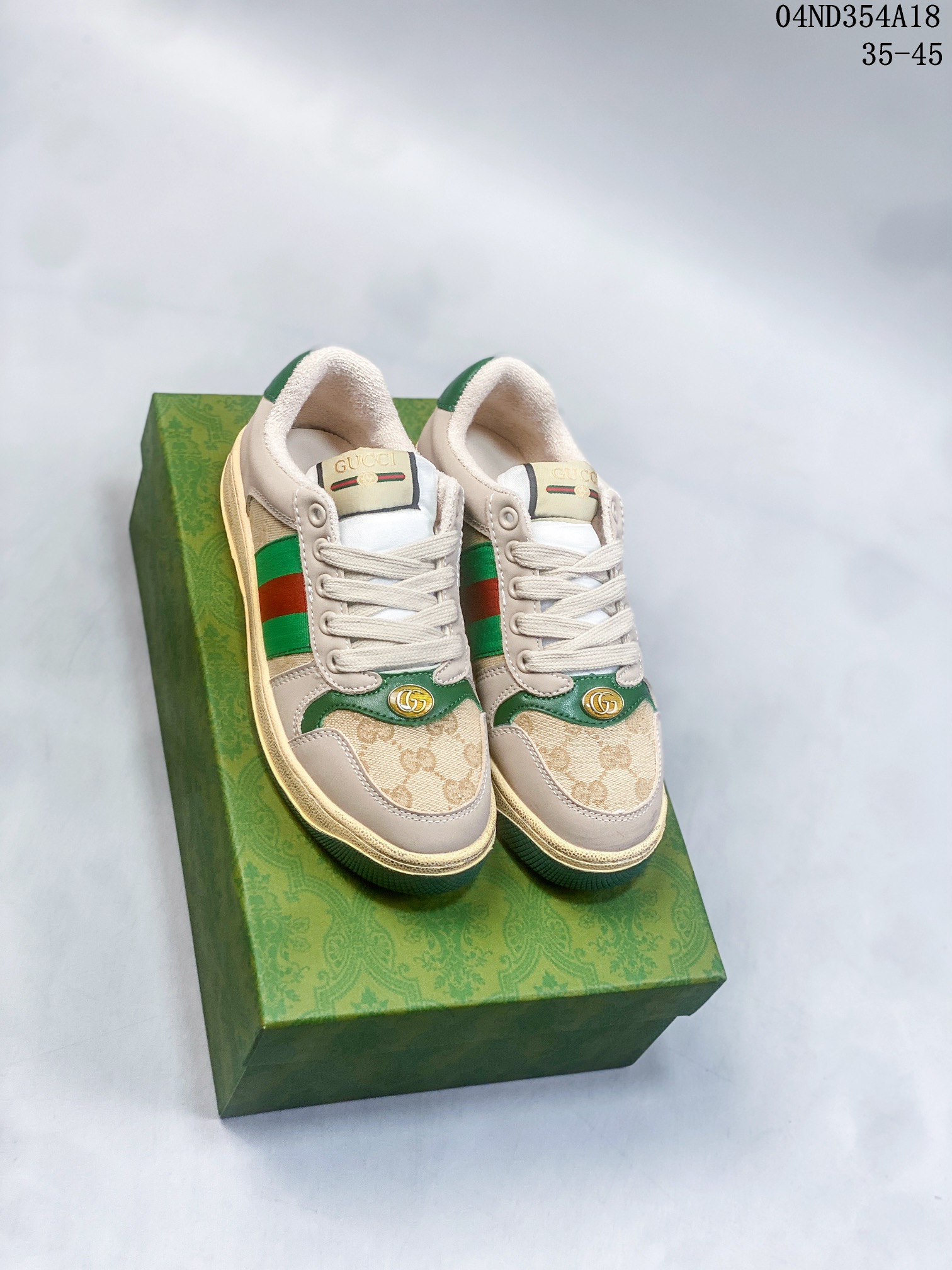 全网首发Gucci/古驰 Distressed Screener sneaker 经典原型复古百搭做旧小脏鞋/复古学院风 怀旧版 原版做旧 双脚鞋_舌嵌入NFC防伪芯片装置+鞋盒标二唯码扫描 秒进官网 秒杀市面任何版本 全套包装 广东代工出品 原档原标原盒 随意对比任何版本 码数:35 36 37 38 39 40 41 42 43 44 45